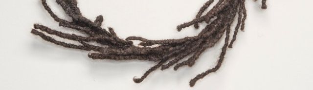 More than 80,000 individual hairs come together in this dreadlocked skein, representing the approximate number of Africans forcibly migrated as chattel slaves in just one year at the height of the transatlantic slave trade. Through her work, Clark often unravels complex racial, social, and cultural issues. While this skein is tightly wound, a loose end emerges, an invitation to viewers to begin the difficult but necessary work of unwinding these issues alongside the artist.
