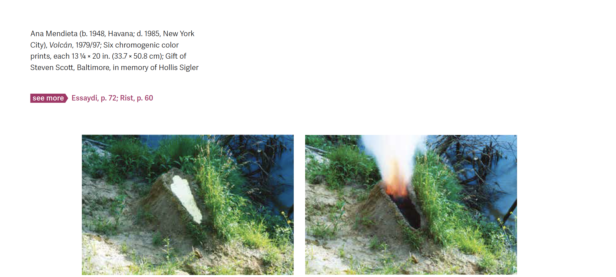 In addition, a graphic element called “See more” appears throughout the book, encouraging readers to flip through and make extra connections. It’s a way for readers to “choose your own adventure” and perhaps see a new way of linking one artwork or essay to another.