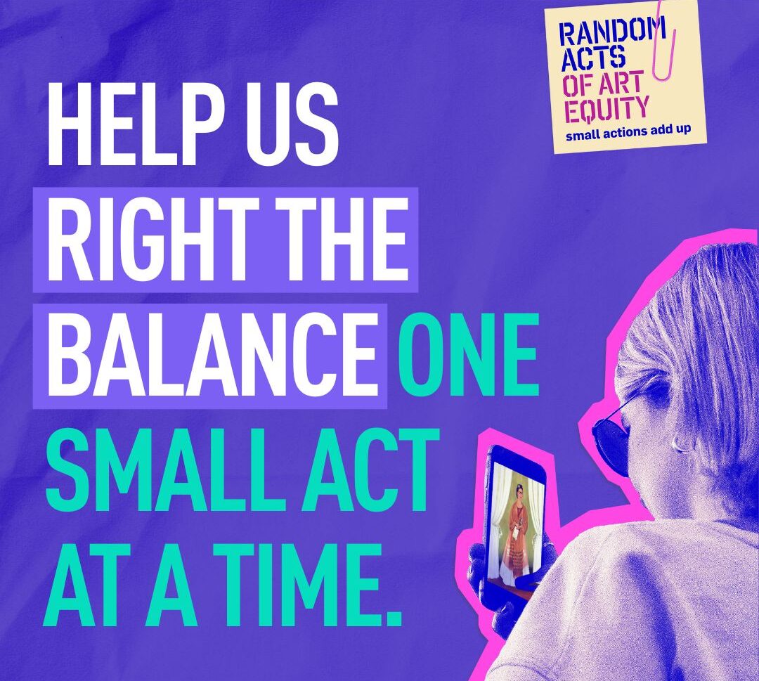 Launching in Women’s History Month in March 2026, Random Acts of Art Equity is a social media campaign that invites everyone into a practice of creative abundance: small, unexpected, incongruous yet joyful, easy, and shareable acts that accumulate and multiply recognition for women and nonbinary artists.